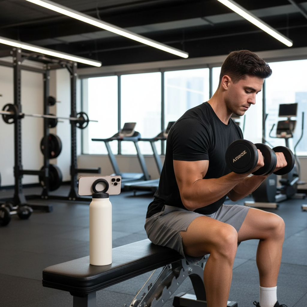 Snap your phone into place and turn your bottle into a tripod in seconds. Record workouts, join calls, or follow tutorials — all hands-free.